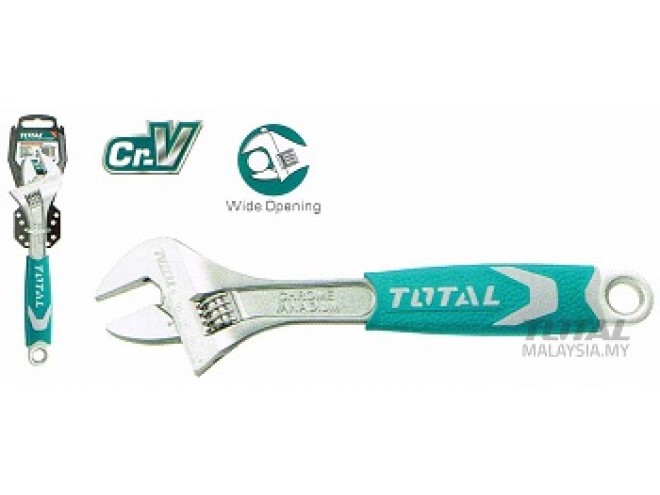 Ключ разводной 200 (8") мм, захват 0-30 мм, обрезинненая рукоятка TOTAL